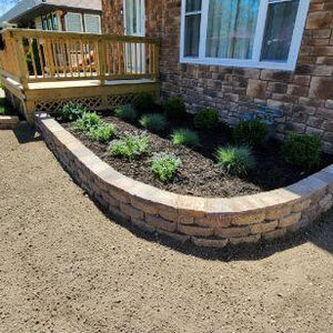 On this project we removed the existing lawn and debris that were the results of a car accident. We installed a new retaining wall and flowerbed as well as a brand new front lawn.